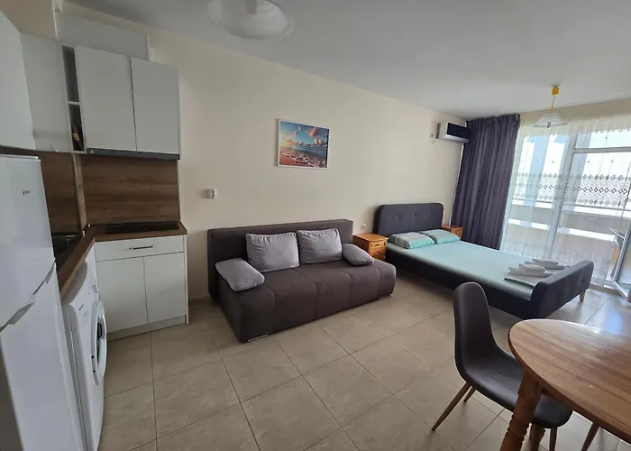 Az Студио Блу минута от плажа apartman kínál egy teljesen felszerelt konyhát, valamint szobákat erkéllyel, öltözővel és kanapéval. A Lake Pomorie egy 10 perces autóútra van, a Preobrazhenie Gospodne-templom pedig alig egy 16 perces sétára található az ingatlantól.